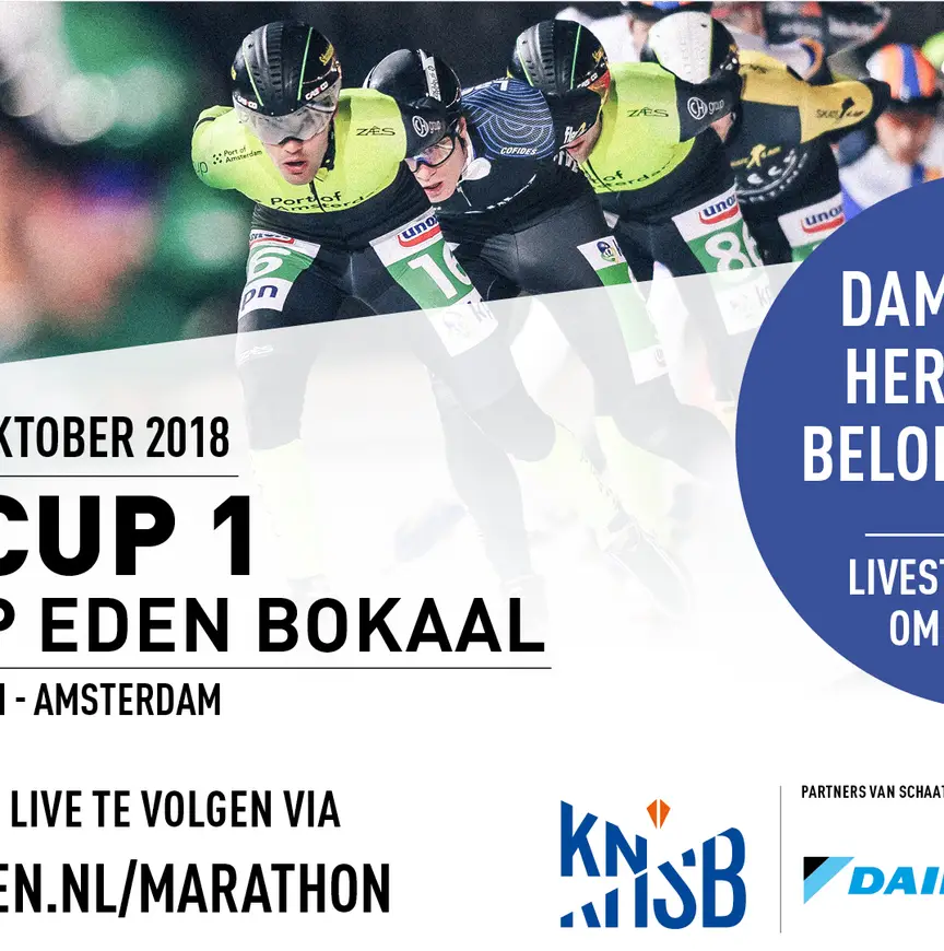 De wedstrijden van de Topdivisie Dames en de Topdivisie Heren zijn live te volgen via de livestream op www.schaatsen.nl/marathon.