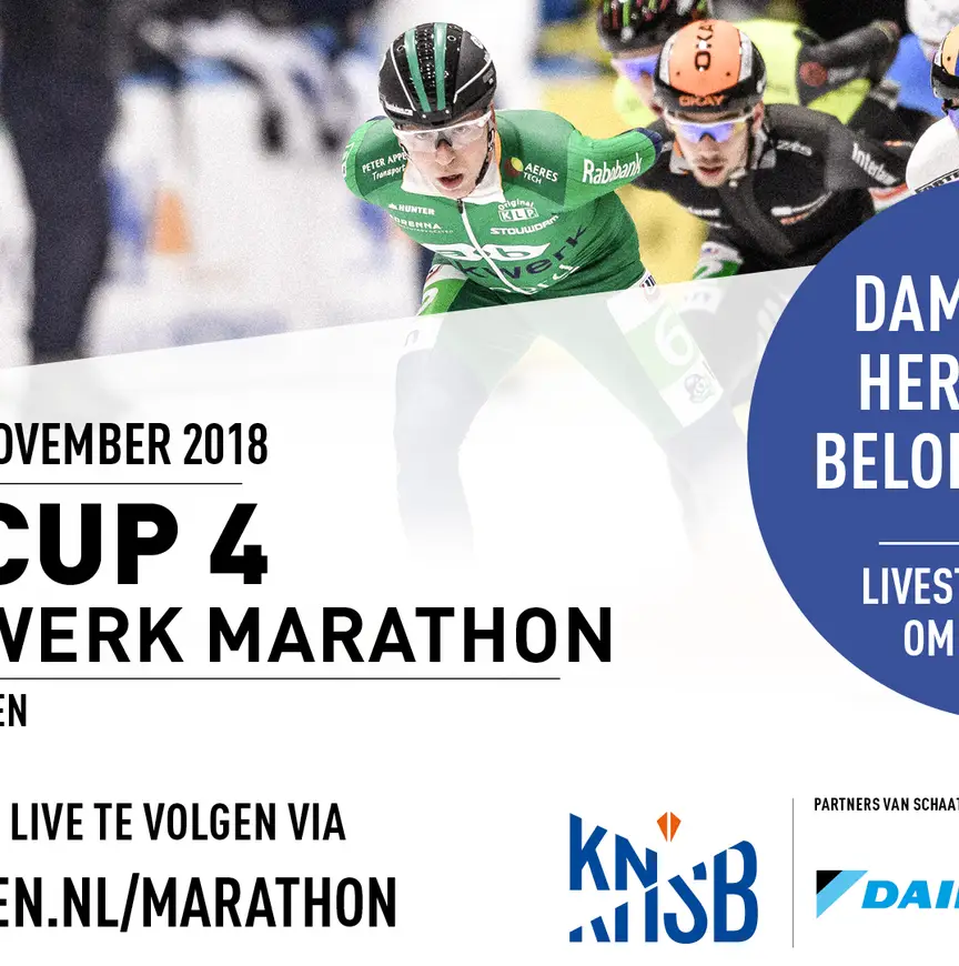 De wedstrijden van de Topdivisie Dames en Heren zijn te volgen via de livestream op schaatsen.nl/marathon.