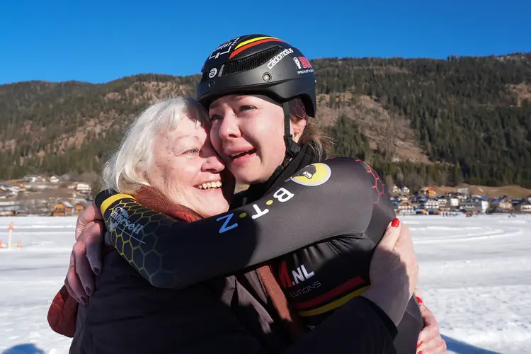 Sprinttitels Maud Lugters en Jim Dhore, testrace Schulting
