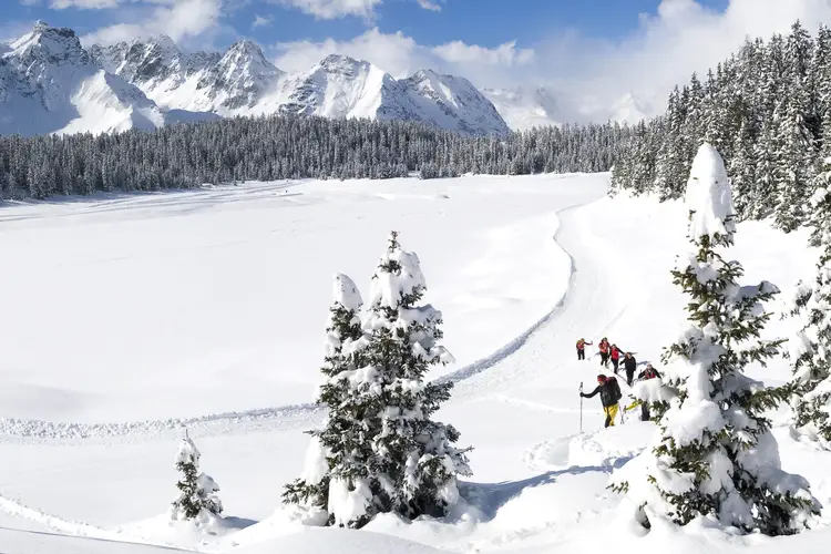 Dromen van Winterspelen op idyllisch Italiaans bergmeer Lago Palú