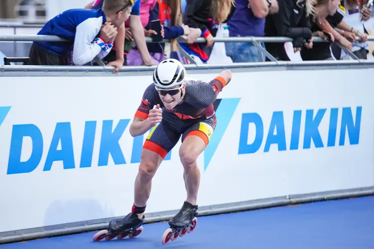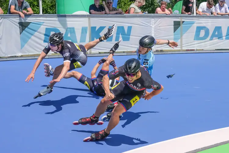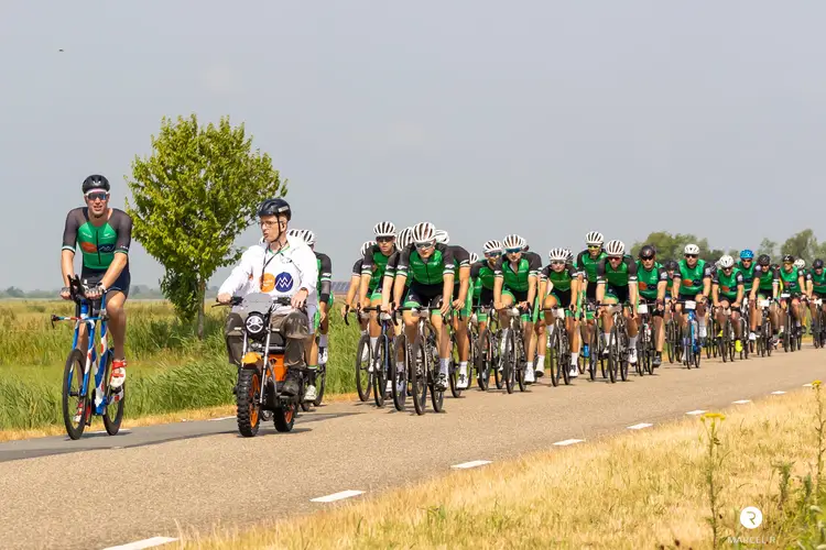 Schaatsers steunen Maarten van der Weijden bij Elfstedentriatlon