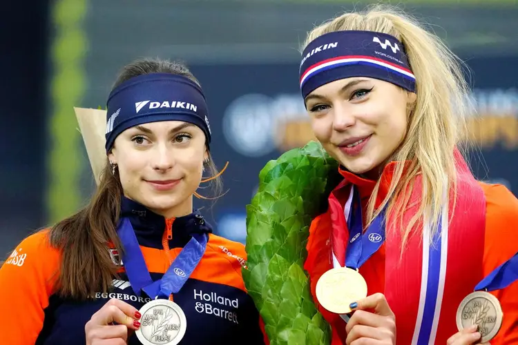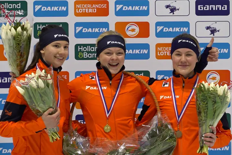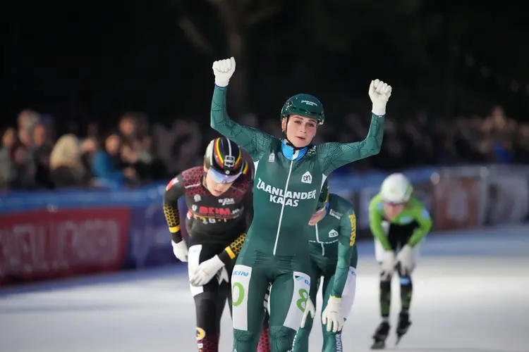Irene Schouten wint, 'meesterknecht' Merel Bosma op het podium
