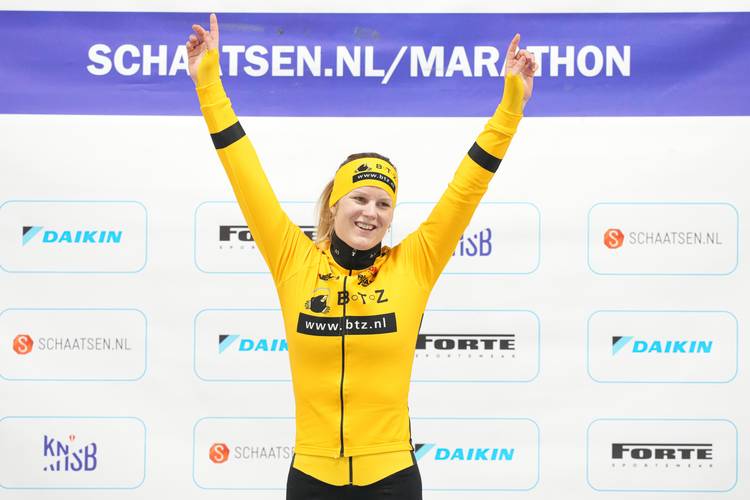 Bianca Bakker profiteert van afwezigheid topsprinters in Heerenveen