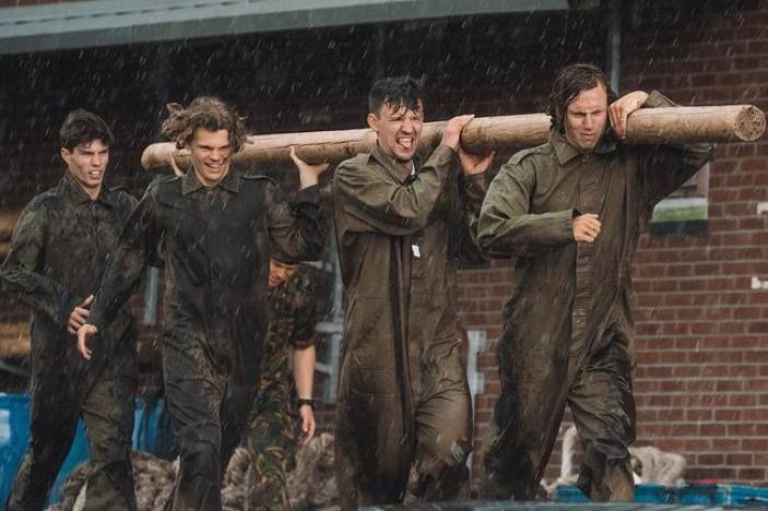 Schaatsers op social: examen op een ijsbaan en teamwork in een hoosbui