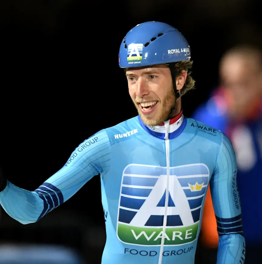 En dan doet de schaatser van de Royal A-ware/Clafis-formatie natuurlijk niet voor spek en bonen mee aan de koers over 125 ronden. “Als ik in winnende positie had gezeten was ik zeker voor de zege gegaan. Zo niet, dan dacht ik het even aan te kijken en misschien rustig aan te doen voor morgen. Maar dat zat er niet in, we moesten pittig aan de bak.”