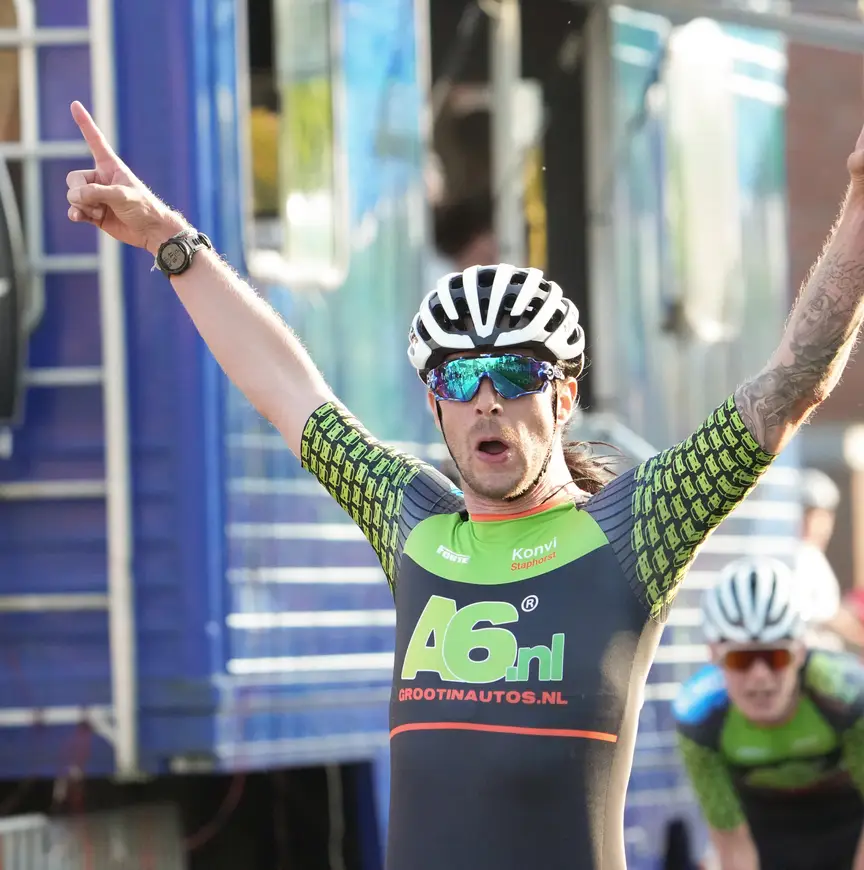 Dat deed Crispijn Ariëns, die als tweede de meet was gepasseerd, wel. “Ze zaten aan alle kanten aan mijn lichaam, ik werd gewoon teruggetrokken en vastgehouden. Dit was geen nette manier om te winnen. Wie er precies wat uithaalde, kan ik niet zeggen, maar achter me reden de jongens van A6. Ik ben hen dat ook gaan vertellen. Dit krijgen ze nog wel terug, want zulke streken vergeet ik niet gauw. Laten we het daarop houden. Voor de rest heb ik prima gereden”, verklaarde de routinier van Reggeborgh, die zijn boosheid tijdens de huldiging allang weer naar de achtergrond had verdrongen.