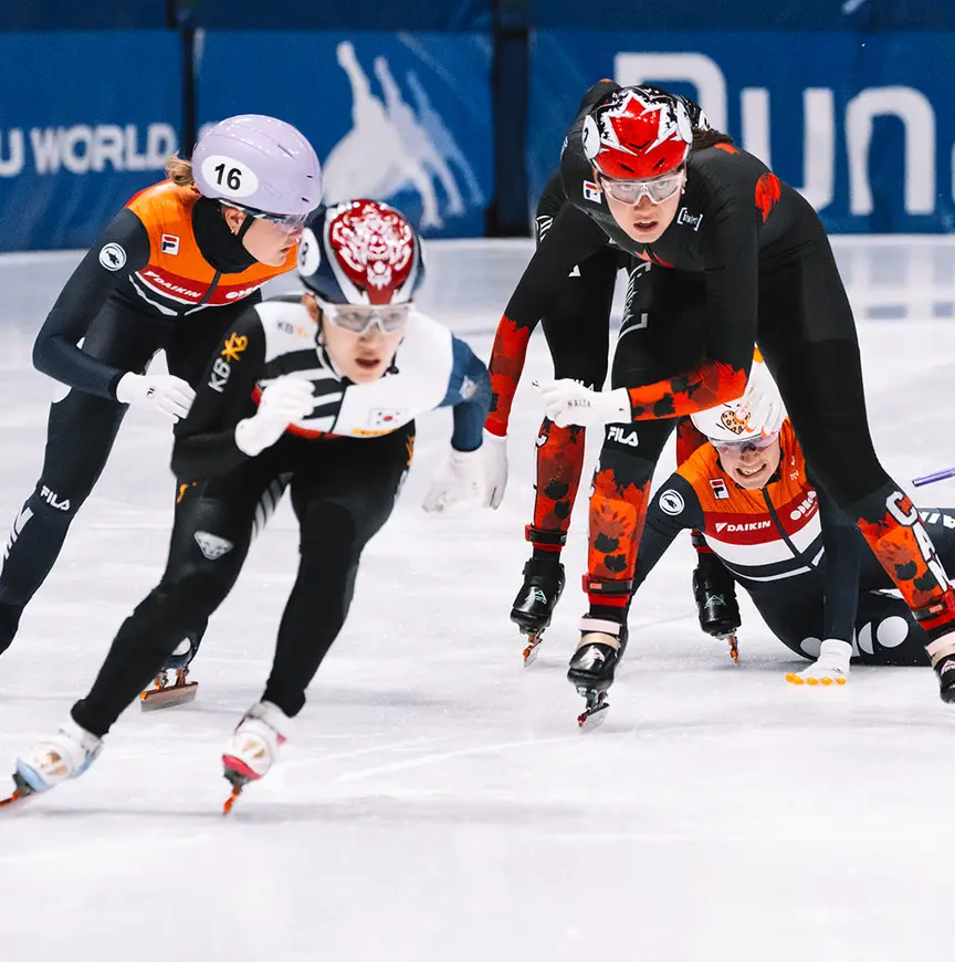 Het kwartet van Oranje (Xandra en Michelle Velzeboer, Yara van Kerkhof en Selma Poutsma) streed afgelopen zondag mee om de koppositie in de race over 27 ronden, toen Yara van Kerkhof op punt stond Michelle Velzeboer in de wisselzone op gang te duwen. De Zoetermeerse werd zodanig (en opzettelijk) gehinderd door een Canadese rijdster dat ze ten val kwam en er niet direct een aflossing met Velzeboer mogelijk was. Ook de naast haar schaatsende Koreaanse ging onderuit en kon evenmin de volgende rijdster van haar ploeg aftikken die toch verder schaatste. Pas daarna herstelde Korea die fout door de aflossing op juiste wijze uit te voeren; de telling van het aantal gereden ronden liep echter vanaf dat moment in het honderd en daar werd de Nederlandse formatie het slachtoffer van. Zilver was de prijs bij de ceremonie protocollaire.