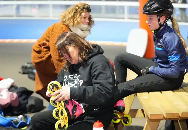 “Ik heb een ticket gekocht en zij was slim genoeg om me te strikken voor een clinic”, vertelt Hildebrand. “Geen probleem natuurlijk, want ik vind het harstikke leuk en ik zie er allemaal oude bekenden.” En dat klopt. Frank Fiers, Valentina Berga, Bart Swings, Sandrine Tas en Peter Michael zijn allemaal aanwezig. In het inlineskaten is iedereen familie.