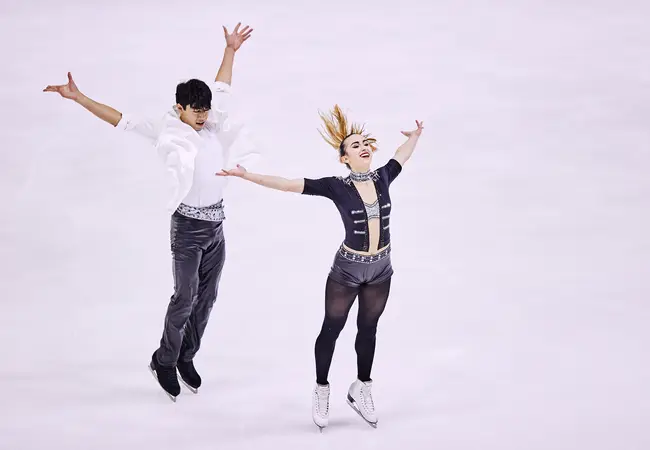 In het ijsdansen noteerden Katarina Wolfkostin en Jeffrey Chen de hoogste score. Het Amerikaanse paar was veruit de beste in beide küren en zette een puntentotaal neer van 165.01. Miku Makita en Tyler Gunara uit Canada volgden op de tweede plaats met 149.39 punten. Het Koreaanse duo Hannah Lim en Ye Quan reed een prima vrije dans en passeerde het Tsjechische paar Katerina Mrazkova en Daniel Mrazek.