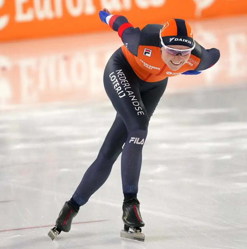 Haar eindtijd was bijna een seconde sneller dan tijdens het WCKT in oktober. “Tijdens mijn rit heb ik niet naar rondetijden gekeken. Ik voelde wel dat ik goed onderweg was, dan is het echt genieten. Van tevoren zei Jac (Orie, red.) tegen mij: 'Blijven zitten en gas d’r op'. Ik moest drie goede rondjes rijden, dat lukte.” Dan lachend: “Ja, dit ijs in Thialf ligt me gewoon veel beter dan in Stavanger.”