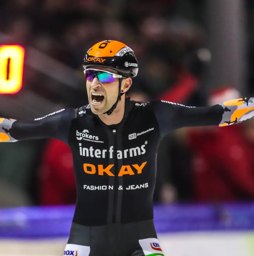 Balen deed Van Ham niet, maakte hij duidelijk. "Absoluut niet. Ik ben alleen maar trots. We hebben met Okay Fashion & Jeans echt een spetterende koers op het ijs gebracht. Crispijn, Sjoerd (den Hertog), iedereen heeft keihard gereden en bergen werk verzet. En dat ik daarin derde mag worden, is prima. Ik heb een geweldig afscheid van De Meent gekregen."