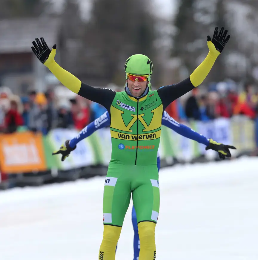 De mannen uit de Eerste Divisie reden hun eigen mass-start. Daar was niet helemaal verrassend Leander van der Geest de beste. Hij liet de jonge Jan Korenberg en de nóg jongere Bart Hoolwerf achter zich. Die laatste vierde deze week aan de Weissensee pas zijn zeventiende verjaardag.