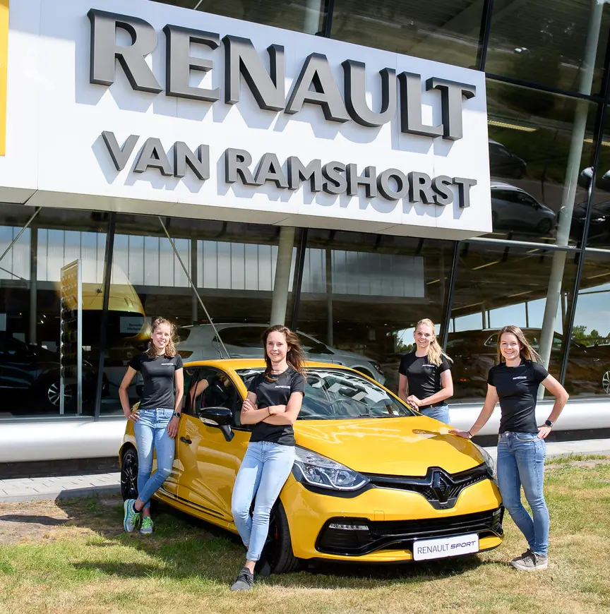 Autobedrijf Van Ramshorst Renault is gevestigd in een opvallend pand langs de A28 in Nijkerk en heeft door zijn gunstige ligging een groot bereik in heel Nederland. De eigenaar van het bedrijf is geen familie van de nieuw aangetrokken Laura van Ramshorst, maar wel een bekende. Het bedrijf stond namelijk afgelopen jaar al op haar schaatspak en auto. "Helemaal na de overwinning van de Alternatieve Elfstedentocht wilden we niets liever dan goed zichtbaar op het schaatspak staan”, vertelt de eigenaar trots.