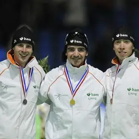 BAM domineerde op de KPN NK Afstanden de tien kilometer. Vlnr.: Bob de Vries, Bob de Jong en Jorrit Bergsma