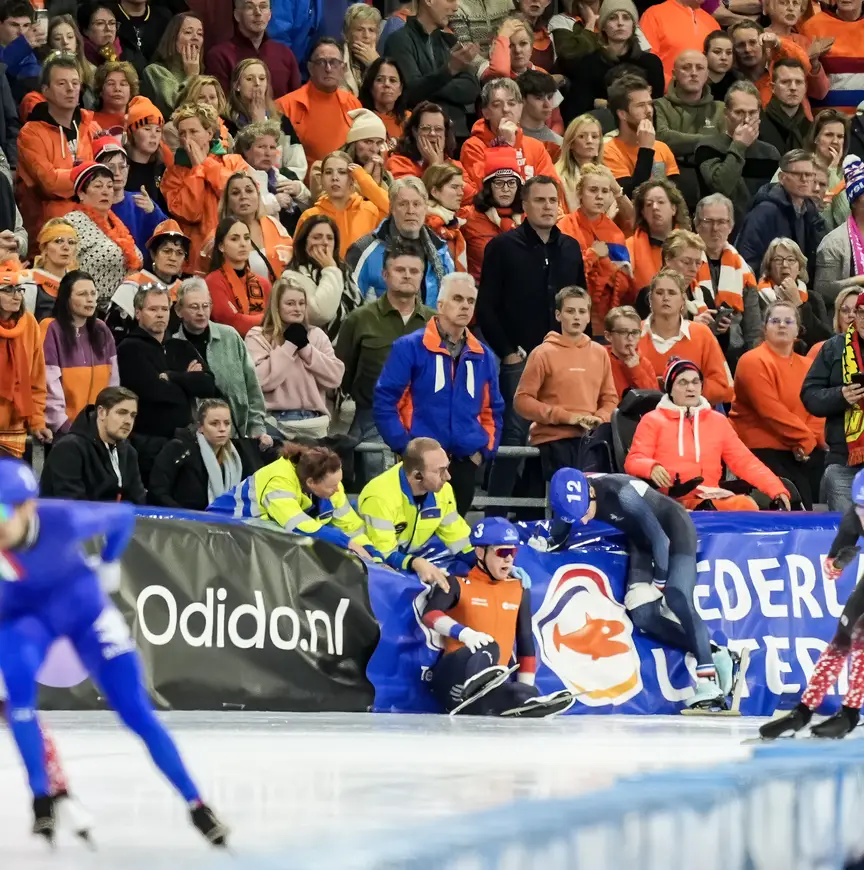 Een lelijke val in de slotfase van de mass start op het EK Afstanden zorgde voor schaafwonden op het rechterbeen en in de knieholte van Bart Hoolwerf en een kapotte schaats. Een incident dat moeilijk te analyseren was voor de kijkers, maar de rijder van Reggeborgh gaf zo goed mogelijk uitleg: “Ik zat in positie in een treintje. Er was niks aan de hand tot twee Fransen buitenom kwamen. Zij stuurden abrupt naar binnen en daar zat ik. Ik werd opgesloten en kon niet verder. We raakten elkaar, waardoor ik uit balans raakte. Ik ging onderuit en nam twee man mee, mijn race was voorbij. Zwaar pijnlijk.”