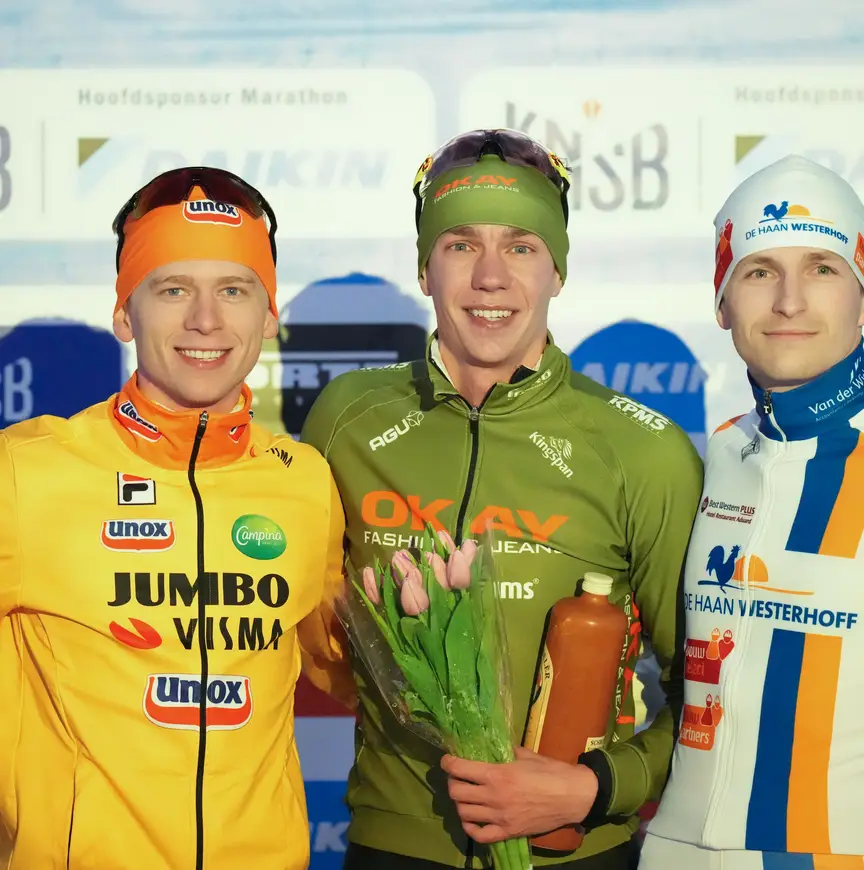 Wederom moest er een fotofinish aan te pas komen, nu trok Visser aan het kortste eind. Swings – tijdens de marathons in dienst van Okay-Interfarms - passeerde in de laatste honderden meters notabene Stijn van den Bunt, zijn ploegmaat bij langebaanteam IKO. “Ik vreesde nog even dat ik zijn podiumplek afpakte, maar ik moest het natuurlijk doen voor mijn ploeg. Ze hebben de hele dag hard gewerkt, we zaten overal mee. We maakten de koers, dan is het aan mij om het af te maken.”