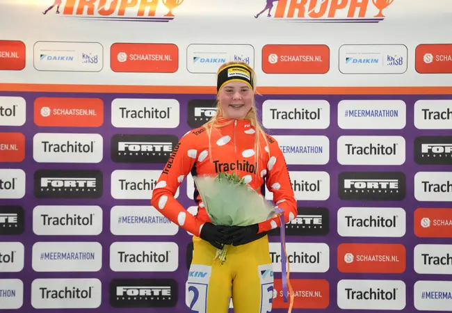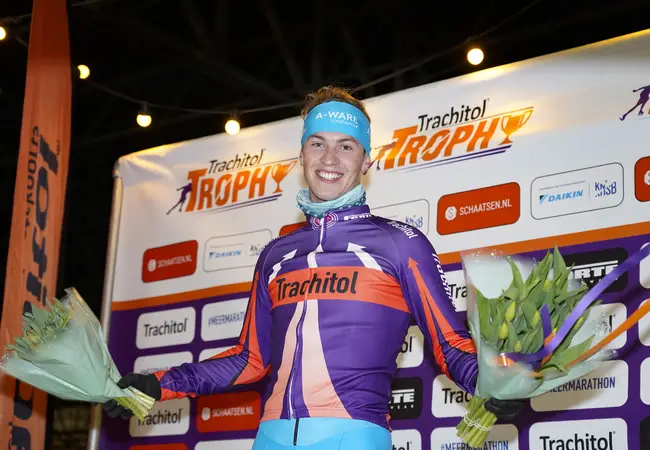 "De stand is 1-1", lachte Haasjes, die bij de Marathon Cup in Heerenveen in exact eenzelfde situatie wél zijn schaats nog voorbij die van De Boer kon steken. "Dit keer ben ik op waarde geklopt en heb ik er ook wel vrede mee." De Staphorster moest genoegen nemen met een tweede plek, waarmee hij zijn Trachitol Trophy alweer afsloot. Vanwege zijn geloof rijdt hij niet op zondag.