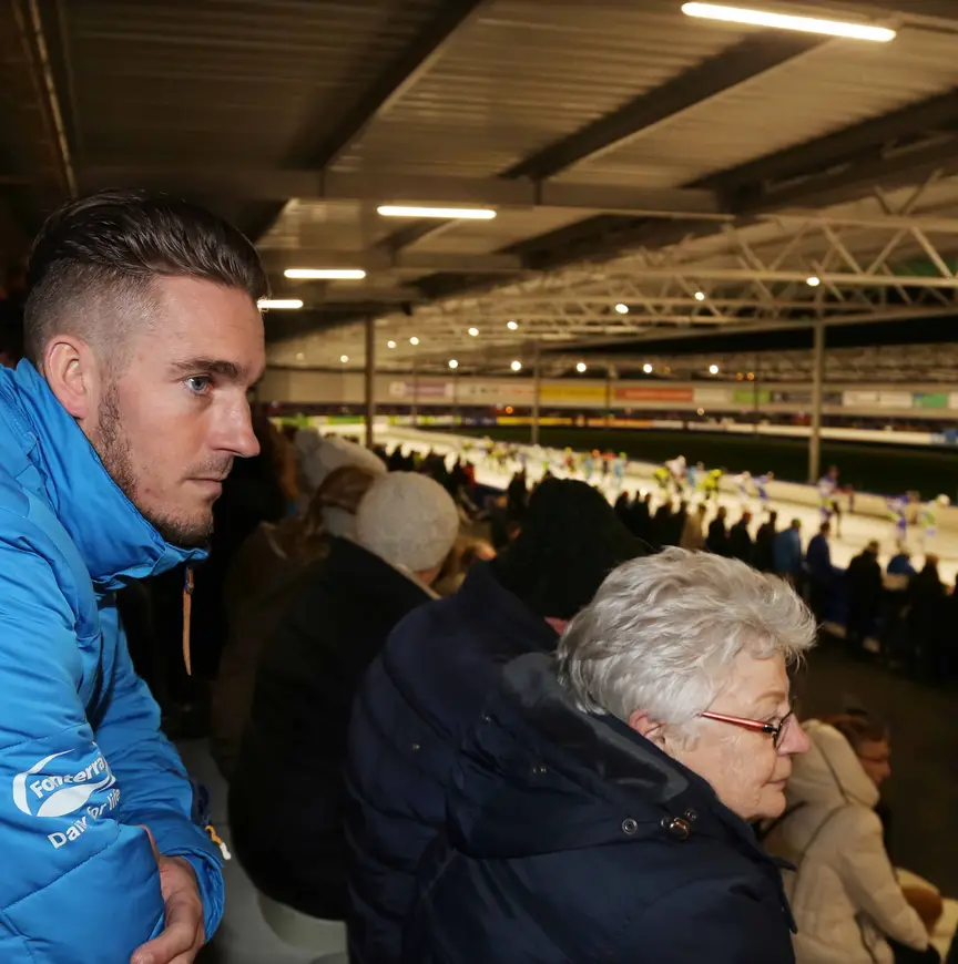Berga stond boven op de tribune op het moment dat zijn ploeggenoten het ijs op stapten. ’’Zo ontzettend apart dat het zo moet aflopen’’, stelde de Drent, die vrijdagavond het bericht kreeg dat hij niet mocht rijden, terwijl hij net de zesde verjaardag van zijn dochtertje Asia vierde. ’’Dat feestje was dus meteen voorbij. Ik ben echt enorm teleurgesteld dat het zo gaat, maar toch ben ik ook superblij dat ik de cup binnen heb. Dat ik ‘m win is terecht, maar als er zoiets gebeurt, kan het opeens toch nog raar lopen.’’