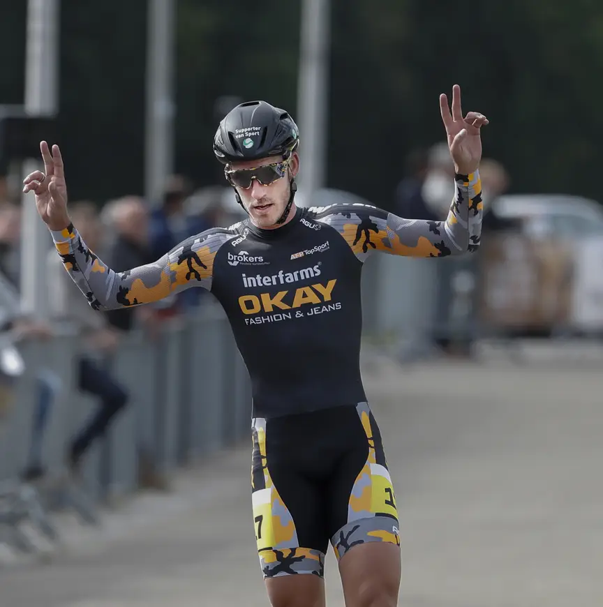 De omloop in Staphorst werd dit jaar niet buitenom gereden – een parcours met heuveltjes – maar op de binnenbaan van evenemententerrein De Tippe. Een overzichtelijk en vlak rondje van 730 meter waarin de rijders elkaar overal goed in de smiezen konden houden. Na veertig rondjes kwam Berga rechtop en met z'n vingers in de lucht over de streep. Op elf seconden volgde ploeggenoot Crispijn Ariëns en daarachter won Casper de Gier de sprint om brons van drie medeachtervolgers. "Net op tijd gaat het weer de goede kant op", vertelt Berga met een lach.