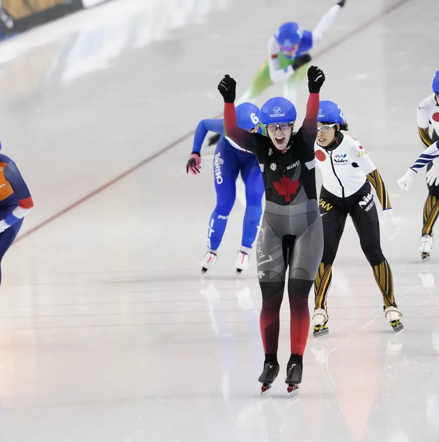 Bij de vrouwen won Ivanie Blondin voor de tweede keer in haar carrière de wereldtitel.. In de chaotische eindsprint was de Canadese de snelste van het peloton. Irene Schouten eindigde op de derde plaats, nadat ze een moeizame sprint reed.