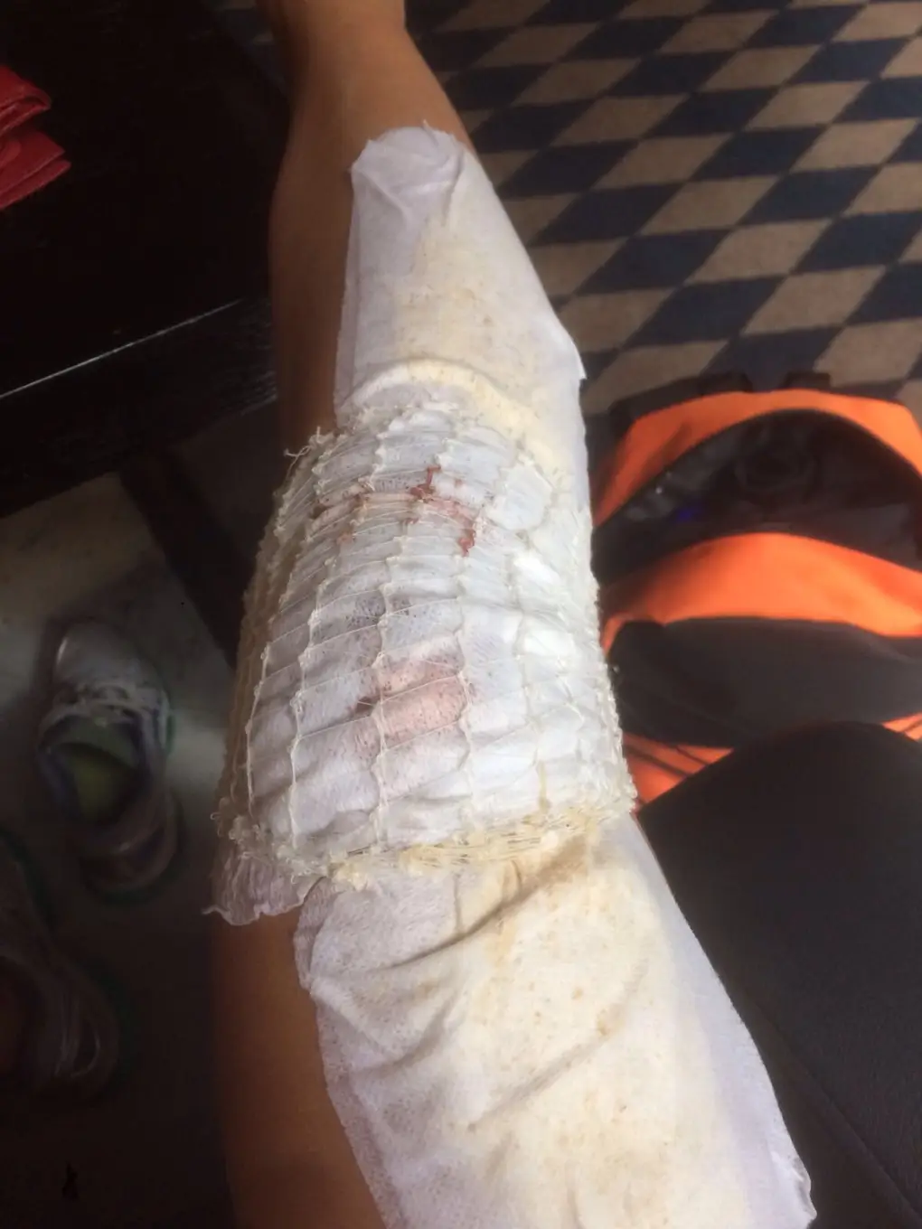 “Ja, ik viel. Ik zat tijdens de afvalkoers gewoon goed voorin, toen er vlak voor mij een valpartij gebeurde. Ik kwam met mijn knie op de stoeprand. Dat was heel vervelend. Het is geen groot letsel, maar er zat best een diep gat in en hij was beurs en blauw.