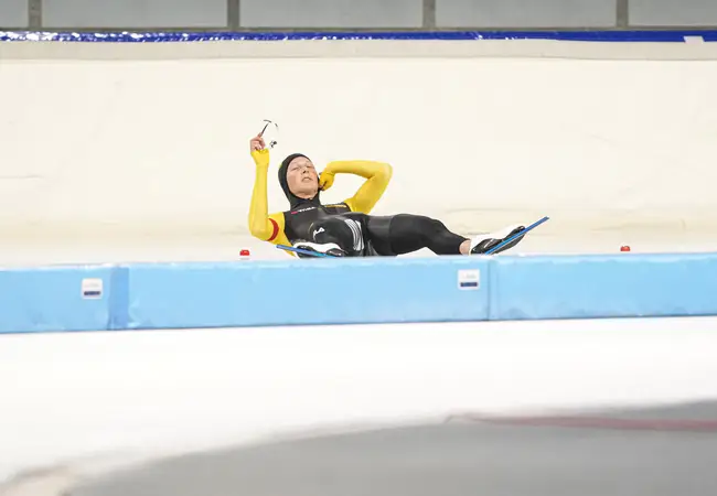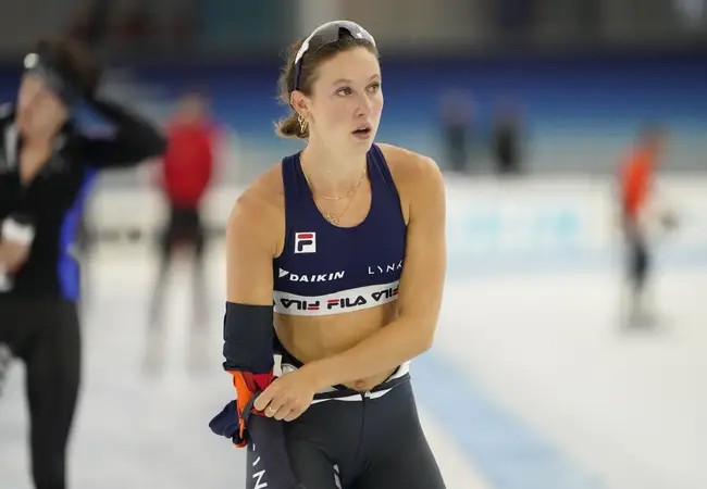 “Jeroen (Otter, haar shorttrackcoach, red.) en ik vroegen ons al twee, drie jaar af wat ik zou kunnen op de 1500 meter. ‘Je bent zo sterk’, zei Jeroen dan. Dat weet ik ook, maar het kwam er steeds niet van. Totdat ik een uitnodiging kreeg van de club om mee te doen aan het kampioenschap. Leek me prima, dus ik gaf aan dat ik de 1000 meter zou kunnen rijden. Jeroen vond het beter de 1500 te proberen. Nou ja, het paste perfect in het programma als voorbereiding op de Invitation Cup van volgende week.”