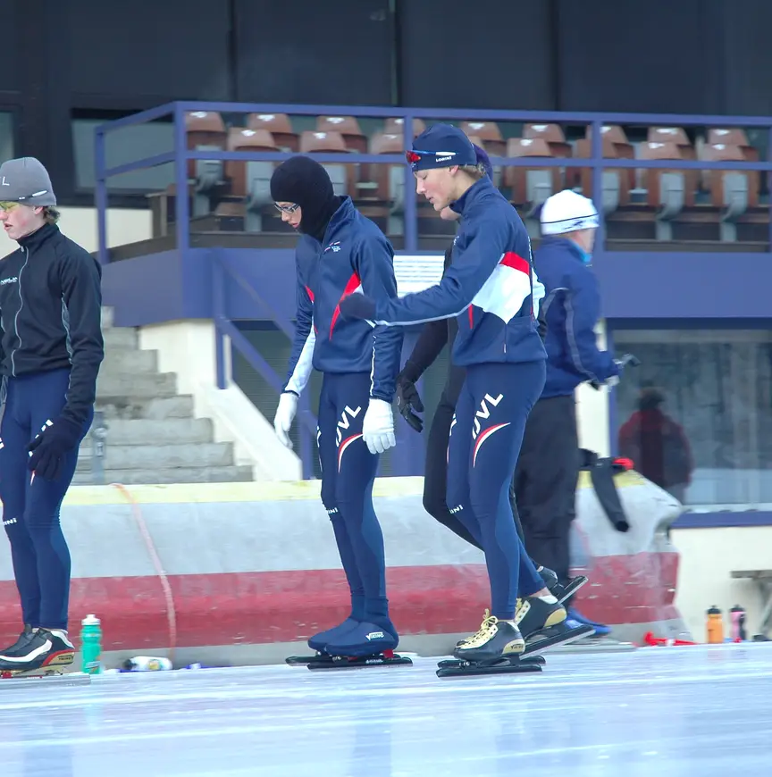 Het drama kostte hem zijn plek in de gewestelijke selectie. Hij werd weer clubrijder, raakte op de dool en kreeg te maken met meer problemen. ‘Mijn lengte bleef een jaar hetzelfde. Die groeicurve topte af. Ik zag jongens in de kleedkamer groot worden. Sommigen hadden al borsthaar en ik zat daar met mijn 155 centimeter. Op die leeftijd wil je gewoon haar op je zak, weet je. Mijn vader zei: ‘Je kan nu iets anders gaan doen, maar je grootste concurrent ben je zelf’. Hij heeft een schema voor me gemaakt en ik ben gaan trainen. Op het NK schaatste ik de mensen van het gewest eruit’.