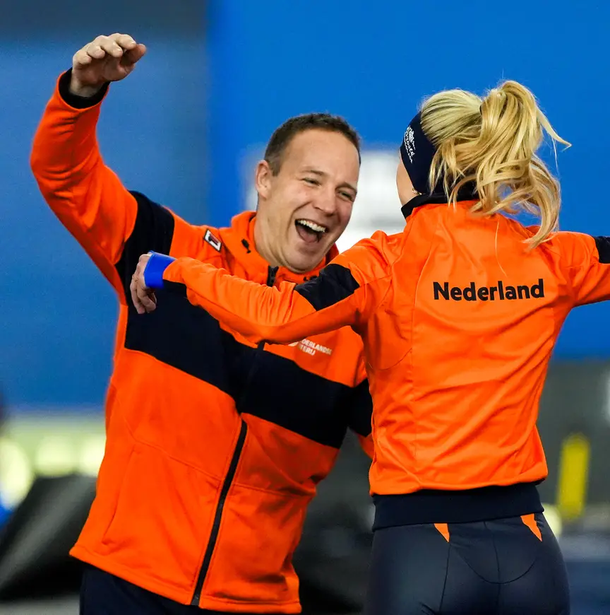 Levenspartner Kjeld Nuis moest zelf nog een 1500 meter kijken en bekeek de gouden race vanaf zijn hotelkamer. “Heb de hele race gezien, behalve de laatste anderhalve ronde”, vertelt Nuis. “Toen rende ik over de gang van het hotel. F*ck, ze gaat het halen, dacht ik. Gelukkig was er niemand anders en zijn er geen beelden van...” Na moeizame jaren bij Jac Orie bloeide Beune de laatste jaren helemaal op. “Het geduld waarmee IKO haar heeft ontwikkeld, onvoorstelbaar”, vervolgt Nuis. “Ze heeft leren vertrouwen op haar eigen vorm. Ik was thuis vaak degene die het beter wist. En dan zei ik: ‘Wat ben je nou weer aan het doen op het ijs?’ Dat is echt zo’n uitspraak geworden bij ons. En nu doet ze iets op het ijs en zegt ze: ‘Laat me nou maar, houd gewoon je bek’. Dat vind ik mooi.”
