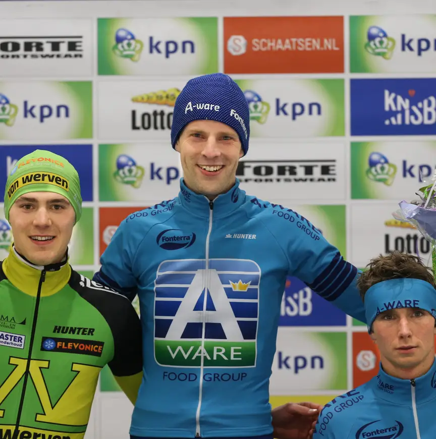 De Vries had een simpele strategie: niemand laten wegrijden. Dat leverde wel een fantastische finale op. De rijder van A-ware genoot daar zelf ook van. ’’Geweldig. Bijna de hele tijd surplace. Ik voelde me goed, wist dat als er niemand weg kwam, ik zelf voor de winst kon rijden. Dat ging eigenlijk perfect.’’ De zege deed hem veel plezier. ’’Ja, het schaatsen gaat heel goed dit seizoen, maar in de marathon had ik nog geen bijzondere uitslag staan. Daarom ben ik hier superblij mee.’’