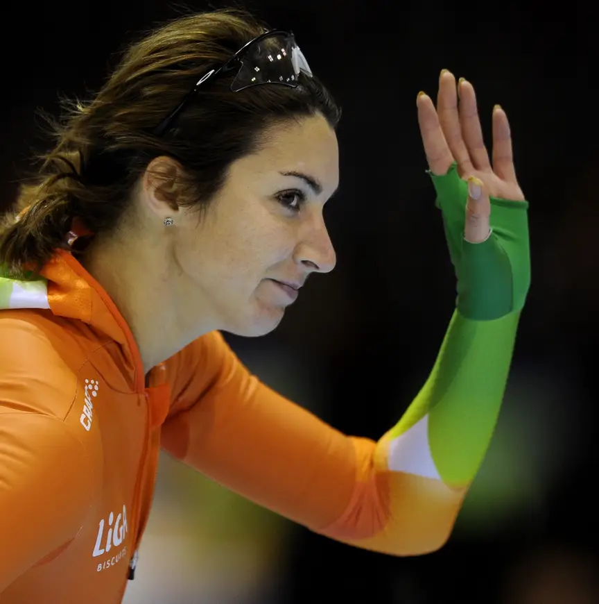 De pupil van Marianne Timmer kon Ireen Wüst en Thijsje Oenema de hand schudden, want die twee schaatssters waren ook ziek geworden rondom de KPN NK Afstanden.
