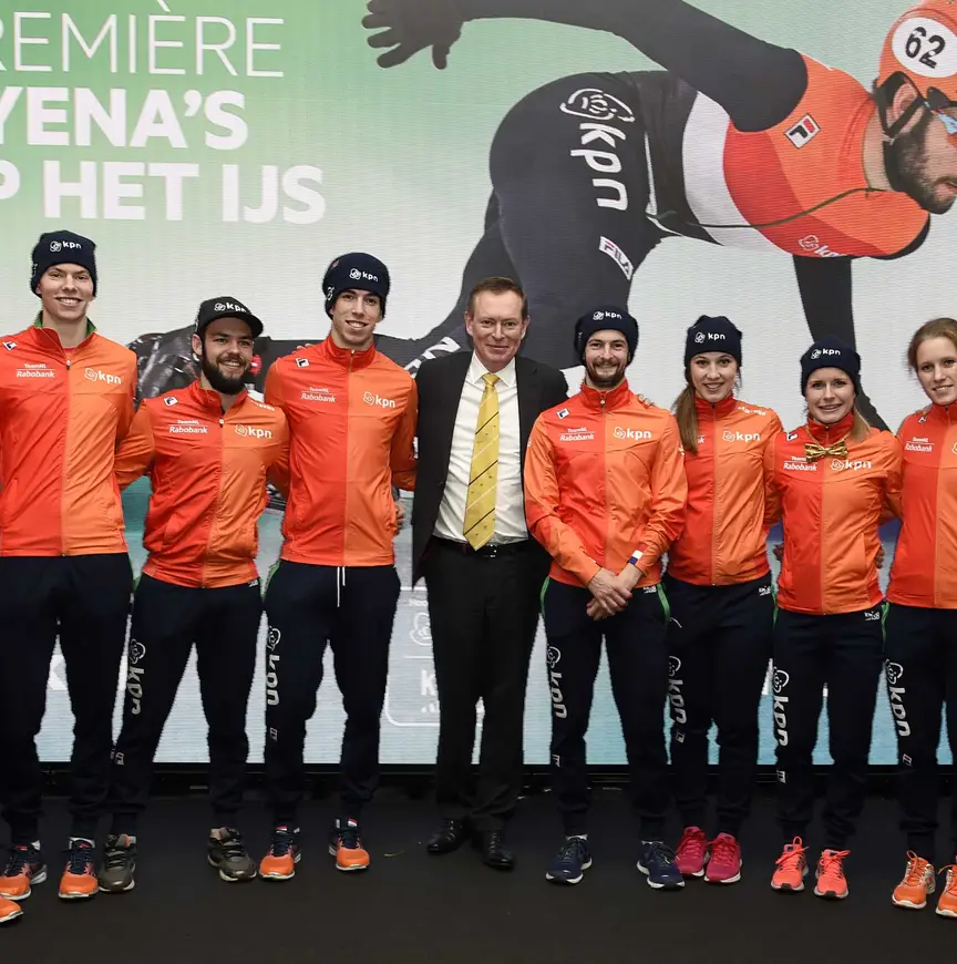 Foto: de shorttrackploeg met minister Bruno Bruins.