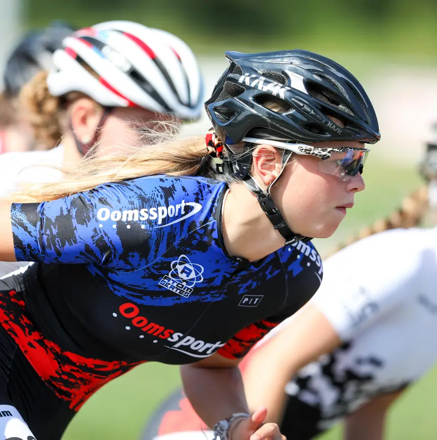 Het leukste aan skeeleren? Dat het toch een soort campingmomentje is! "Je zit als team met zijn allen gezellig langs de baan in een tent. De sfeer is zo leuk", besluit ze met een glimlach.