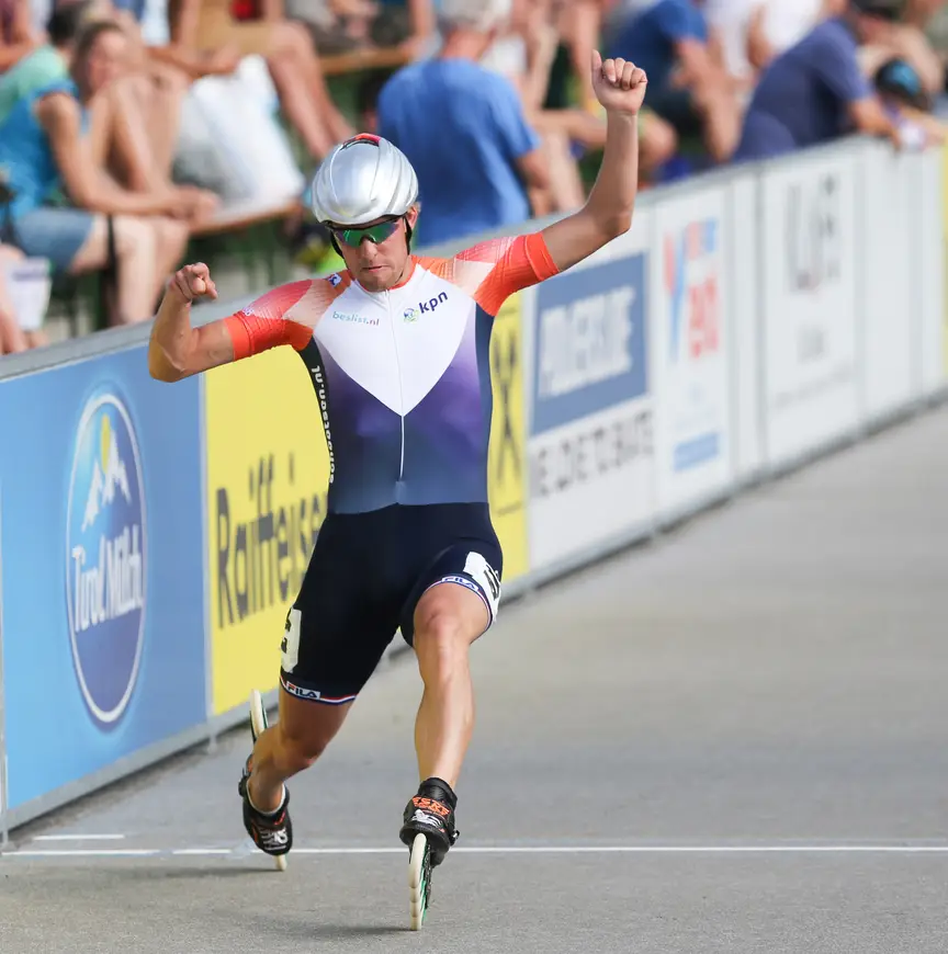 Het ging niet zo snel als in de training, maar wel sneller dan in de kwalificatie deze ochtend. “De baan zuigt op een of andere manier, er is veel weerstand”, legt Ronald Mulder uit. “Maar dat is voor iedereen hetzelfde en ik maak mezelf altijd wijs dat ik daar het minst last van moet hebben. Bij het schaatsen zijn we gewend veel met tijden bezig te zijn, maar in het skeeleren zijn de omstandigheden altijd weer anders.”