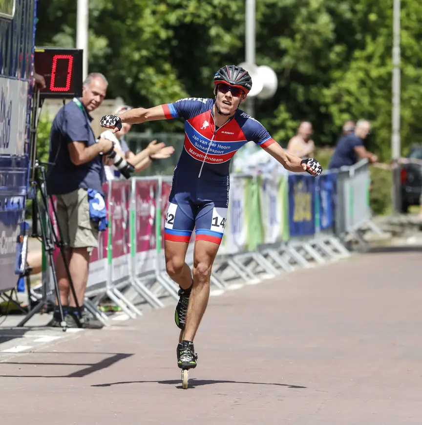 Hij heeft inmiddels zijn skeelers verruild voor gympen en zit na te genieten op een campingstoeltje. "Het is wel leuk om voor een verrassing te zorgen. Maar dit had ik zelf echt niet kunnen dromen." Verkerk deed vorig jaar voor het eerst mee met het kampioenschap. "Toen lag ik er zo'n beetje gelijk af. Dit jaar liep het wel lekker. Ik wilde nu zo lang mogelijk erbij blijven en leuk meerijden. Echt jezelf stuk rijden en dan weer een goede training hebben gehad."