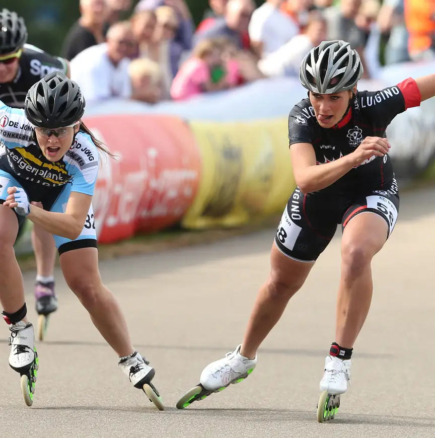 Buurman stond op het podium met twee inline-skatesters van het sterke Team Sprog – naast winnares Kamminga de nummer drie Bianca Roosenboom – en kreeg in de finale ook nog te maken met hun teamgenote Sharon Hendriks.