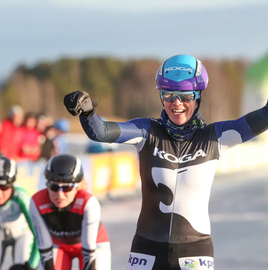 Zelf wachtte ze zo lang mogelijk. ’’Als je tegen wind te vroeg gaat, weet je dat je waarschijnlijk nog voorbijgereden wordt. Daarom deed ik lang niets. Pas op het laatste moment ging ik er mooi nog voorbij. Ja, ze trokken hem min of meer voor me aan.’’