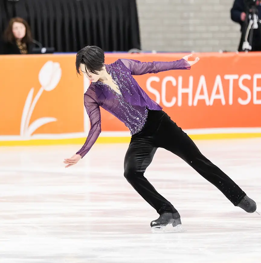 Japanse vlaggen, borduursels en spandoeken van mensen in het publiek kwamen tevoorschijn toen hun idolen het ijs betraden. Na een geweldig optreden van Shun Sato (bovenstaande afbeelding) op vrijdag, waar hij een waardering kreeg van 95.08 punten, waren de verwachtingen voor de vrije kür op zaterdag hooggespannen. “De val aan het begin van mijn kür was jammer, maar gelukkig wist ik me goed te herpakken. Ik was wel trots dat ik daarna geen fouten meer heb gemaakt en dat ik de koppositie heb kunnen behouden. Het is voor mij de tweede keer dat ik in Tilburg ben. Ik vind het leuk hier weer te zijn en door het lekkere eten hier goed te presteren.”