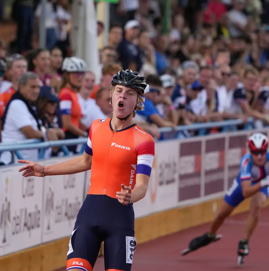 “Ik wist niet precies hoe de tussenstand was, omdat het scorebord tegen het einde haperde. Je komt niet tot rekenen, omdat je zo bezig bent met die race. Waar ik me op moest richten, was zo lang mogelijk rustig blijven, niet toegeven aan de zenuwen en pas versnellen wanneer de meesten kapot zaten. Mooi dat het volgens het plan is verlopen. ’t Zou inderdaad leuk zijn als dat goud zou hebben opgeleverd”, klonk het enigszins berustend. “Het resultaat, een medaille, weerspiegelt aardig hoe mijn seizoen is geweest. Ik heb constant gepresteerd, er is veel vooruitgang geboekt en ik ben erin geslaagd op de juiste manier naar dit evenement toe te leven.”