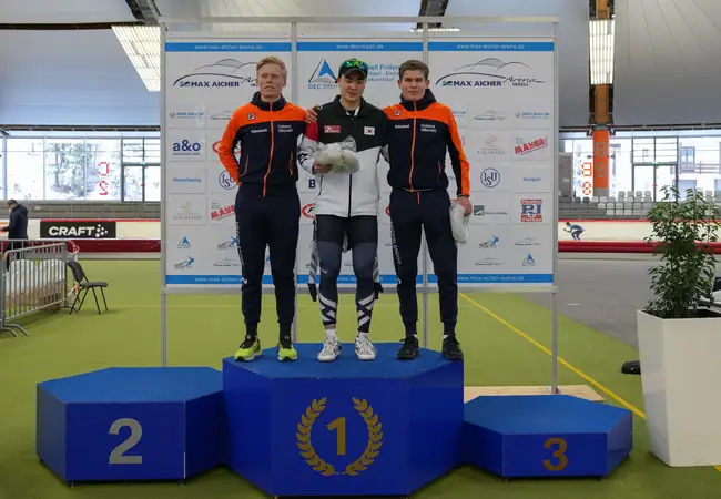Waar overwinningen bij de vrouwen de afgelopen jaren gemeengoed zijn, zijn die voor de mannen zeldzamer. Jur Veenje was in 2019 de laatste. In Noorwegen schreef hij de 1500 meter op zijn naam. Het jaar daarvoor was Yves Vergeer tweemaal de beste op de mass start. Dat de Nederlandse mannen op de 1500 meter zondag zelfs de eerste drie plekken bezetten, mag dus met recht bijzonder genoemd worden. Tim Prins was met 1.46,59 de snelste. Joep Wennemars (1.47,06) en Gert Wierda (1.47,44) eindigden binnen een seconde van de snelle rijder van het KNSB Talent Team Noord.
