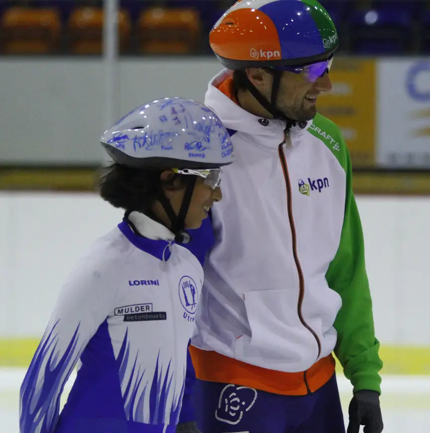 Jullie hebben de kans gegeven aan een aantal shorttrackers om de Shorttracktrainer 3 cursus te doen. Deze cursus werd afgesloten met een trainingsdag voor clubrijders in Nederland. Het was een zware maar hele leuke dag en ik realiseer me dat dit soort dagen heel erg belangrijk zijn voor de toekomst van het shorttrack in Nederland. Ik wil jullie bedanken voor deze investering.