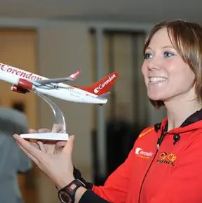 Het logo van de vliegtuigmaatschappij en touroperator zal wel op de schaatspakken van de rijdsters verschijnen.