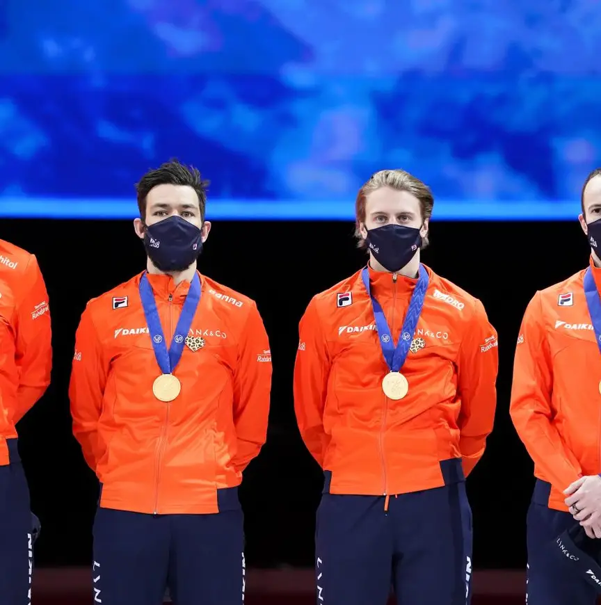 5-7 maart 2021. Een WK zonder franje, want corona regeert. Vrijwel alle toplanden onbreken in Dordrecht. Daan Breeuwsma, debutant Jens van ’t Wout, Itzhak de Laat en Sjinkie Knegt nemen de honneurs waar in de mannenrelay. De halve finale (met Hongarije, Kazachstan en Frankrijk) wordt simpel gewonnen, in de finale is er helemaal weinig tegenstand. Hongarije bijvoorbeeld, dan nog met de wereldberoemde broers Liu, finisht als tweede op bijna tien seconden.