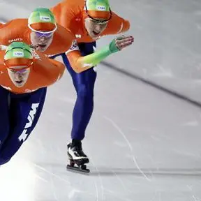 De damesploeg in Berlijn met Ireen Wüst in plaats van Marrit Leenstre De Canadese vrouwen waren met 3.00.90 veruit de snelsten. Rusland eindigde in 3.03.90 als tweede. Nederland werd vorig weekeinde in Berlijn tweede op de ploegachtervolging. Toen deden Voorhuis, Joling en Ireen Wüst mee. "Ik heb goede dingen gezien'', zei bondscoach Wopke de Vegt. "Als wij straks een trein hebben staan met daarin Wüst én Leenstra zijn we ijzersterk. Dan kunnen we nog zien wie daar als derde vrouw bij kan. Ik heb een aardige groep waar ik uit kan putten.'' De mannen kwamen zaterdag niet verder dan de vijfde plaats. Remco olde Heuvel verloor in de laatste twee ronden de aansluiting met Koen Verweij en Bob de Vries.