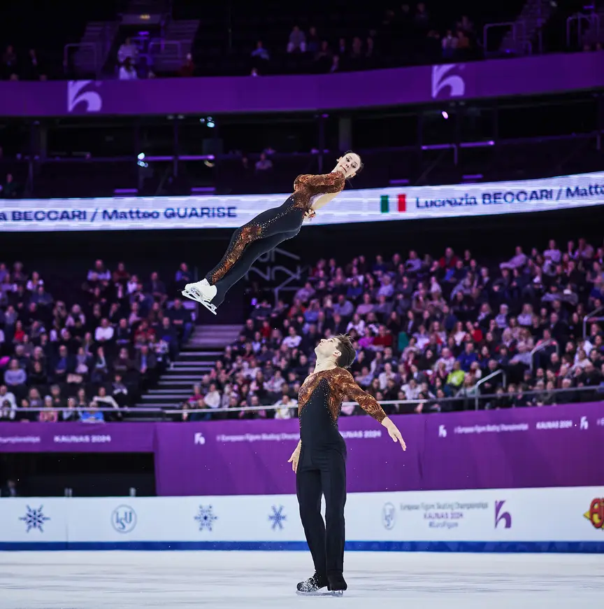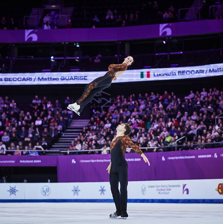 De gouden medaille ging donderdagavond verrassend naar Lucrezia Beccari en Matteo Guarise. Hoewel de twee Italianen ruim vijftien jaar schelen vonden ze elkaar op de muziek van de musical Cats. Ze bleven nagenoeg foutloos, zetten hun beste vrije kür ooit neer en klommen zo van de derde naar de eerste plek. De Georgiërs Anastasiia Metelkina en Luka Berulava kregen het zilver omgehangen, brons was voor de Italianen Rebecca Ghilardi en Filippo Ambrosini.