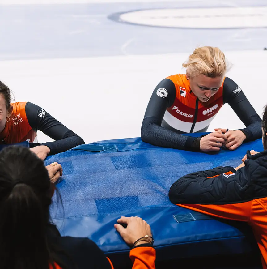 Soepeler bewegen, dat wil de voormalige Nederlandse shorttracktopper nog wel iets beter uitleggen. “Vloeiender rijden zorgt dat de snelheid hoger blijft, je minder van je lijn afwijkt en je de bochten ronder kunt nemen. Worden die te hoekig, dan begint ze te veel op kracht te glijden waardoor er energie verloren gaat.” Wat hij bedoelt: het een heeft met het ander te maken. “Over meer energie beschikken betekent ook weer dat je meer om je heen kunt kijken waar de tegenstanders zitten. Moet ik deze bocht wijd nemen of juist krap? Op die wijze wordt het steeds lastiger om haar te passeren.