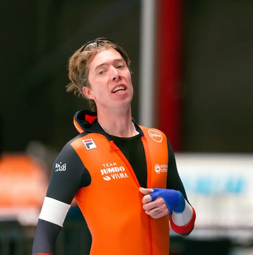 “Bijzonder dat Ghiotto zo’n dijk van een rit reed. Echt knap”, erkende Bergsma. “Hij zei dat hij het een eer vond om samen met Ted-Jan en mij op het podium te staan. Leuk om te horen van de wereldkampioen, er spreekt veel respect uit”, aldus de tevreden noorderling voor wie het geen seizoen is geworden à la de droomvlucht van zijn Zuid-Europese kompaan. Hij werd ziek, knapte op, kroop weer in de lappenmand en kon zo nooit het niveau aantikken wat ze misschien bij zijn nieuwe club Jumbo-Visma wel hadden verwacht. Goud op de mass start op het NK Afstanden, zilver op de 10.000 meter en brons voor de vijf kilometer, dat waren de tastbare bewijzen van zijn 25 optredens in langebaanverband deze winter.