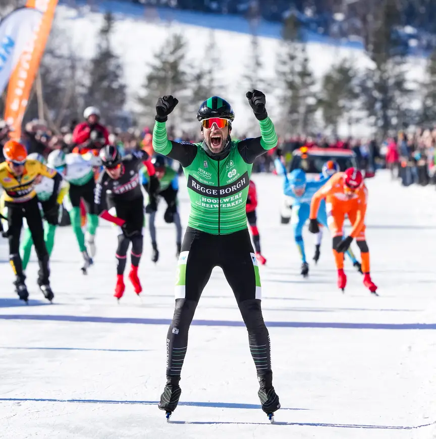 Dat deed ‘Ari’ dan ook niet, op het moment dat de beslissing zou vallen na een enerverende wedstrijd waarin een vrij grote, naar het einde toe slinkende kopgroep (zestien man, uiteindelijk zeven) de namen leek op te leveren voor de eerste posities in de uitslag. Dat gebeurde niet; in het bijna gebruikelijke kat-en-muis-spel van rijders die de zege ruiken, werd er net te veel getreuzeld en maakten de achtervolgers nog genoeg snelheid weer vooraan aan te sluiten. Het was kiele-kiele voor de Reggeborghs – met een ijzersterke Ronald Haasjes als stoorzender - maar net voldoende om de laatste paragraaf van het tactisch plan tot uitvoering te brengen. Sprinten met Crispijn.
