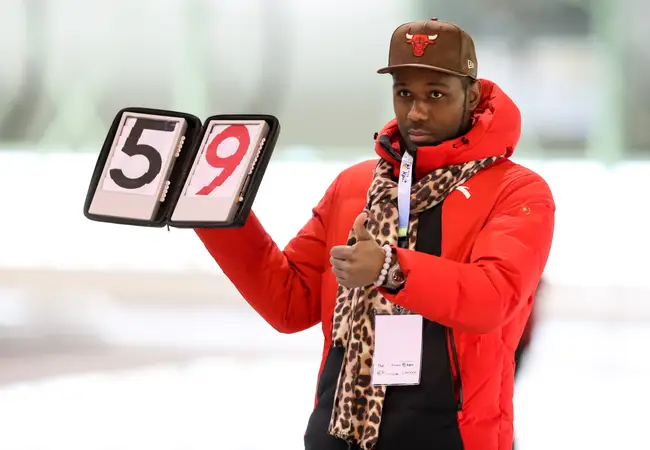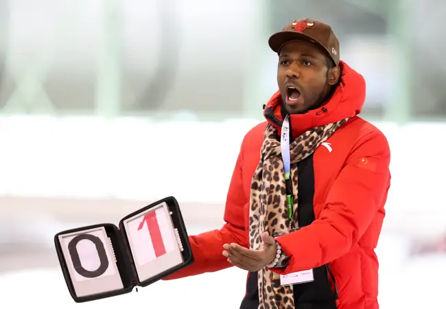 Gestoken in een warme rode jas met China op zijn rug en met een Chicago Bulls-pet op zijn hoofd kijkt Davis langs de ijsbaan toe hoe de junioren de 3000 meter afwerken. Hij is dit weekeinde verantwoordelijk voor de sprinters, legt hij uit. Een week geleden was Davis ook aanwezig op de eerste Junior World Cup in het Noorse Bjugn. "Ik heb twee van mijn favorieten landen kunnen bezoeken dankzij China. Daar ben ik ze dankbaar voor, maar ik heb geen idee waarom ze mij hiermee naartoe hebben genomen", grapt hij.