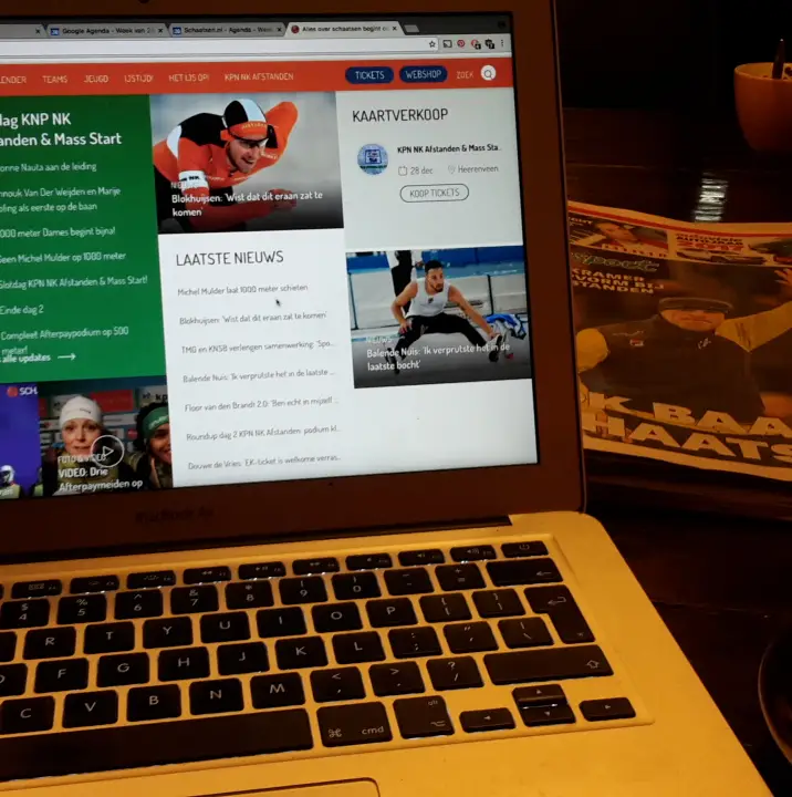 Het duurt nog even voordat de koers losbarst, dus ik drink nog maar een bakkie. Ondertussen natuurlijk volgen hoe mijn collega’s van schaatsen.nl en concullega’s op het ijs het doen! Poehee, vijf of tien kilometer in je eentje. Ik vind het knap!