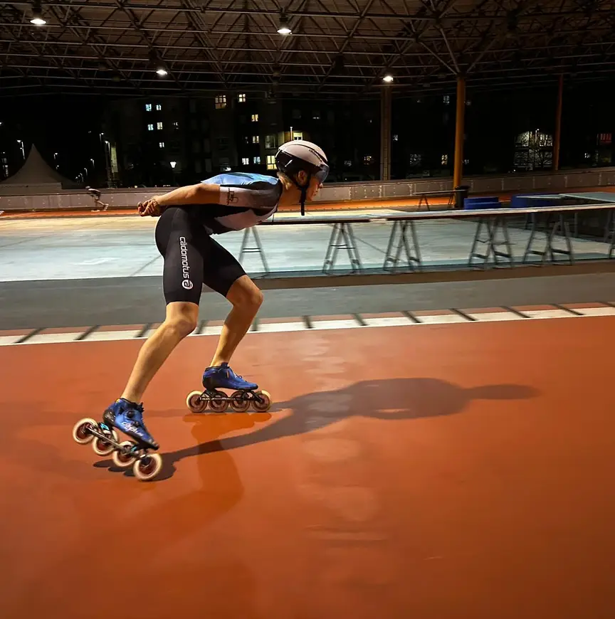 Tom Mulder (19, foto boven uit Gijon), een atleet met twee paspoorten en daarom in staat voor Nederland te skaten en als Belg de wereld over te trekken om op de langebaan beter te worden, is een pientere kerel. Vorige zomer piekerend over de vraag hoe hij de verschillende disciplines zo goed mogelijk zou kunnen combineren, rees het plan een inlineteam uit de grond te stampen. Gelijkgezinde maten had-ie zo gevonden, en de centen waarmee een en ander kon worden bekostigd, waren ook vrij snel binnen. Een handomdraai is misschien wat veel eer, maar het duurde niet lang voordat Team Cadomotus Nextgen een feit was.